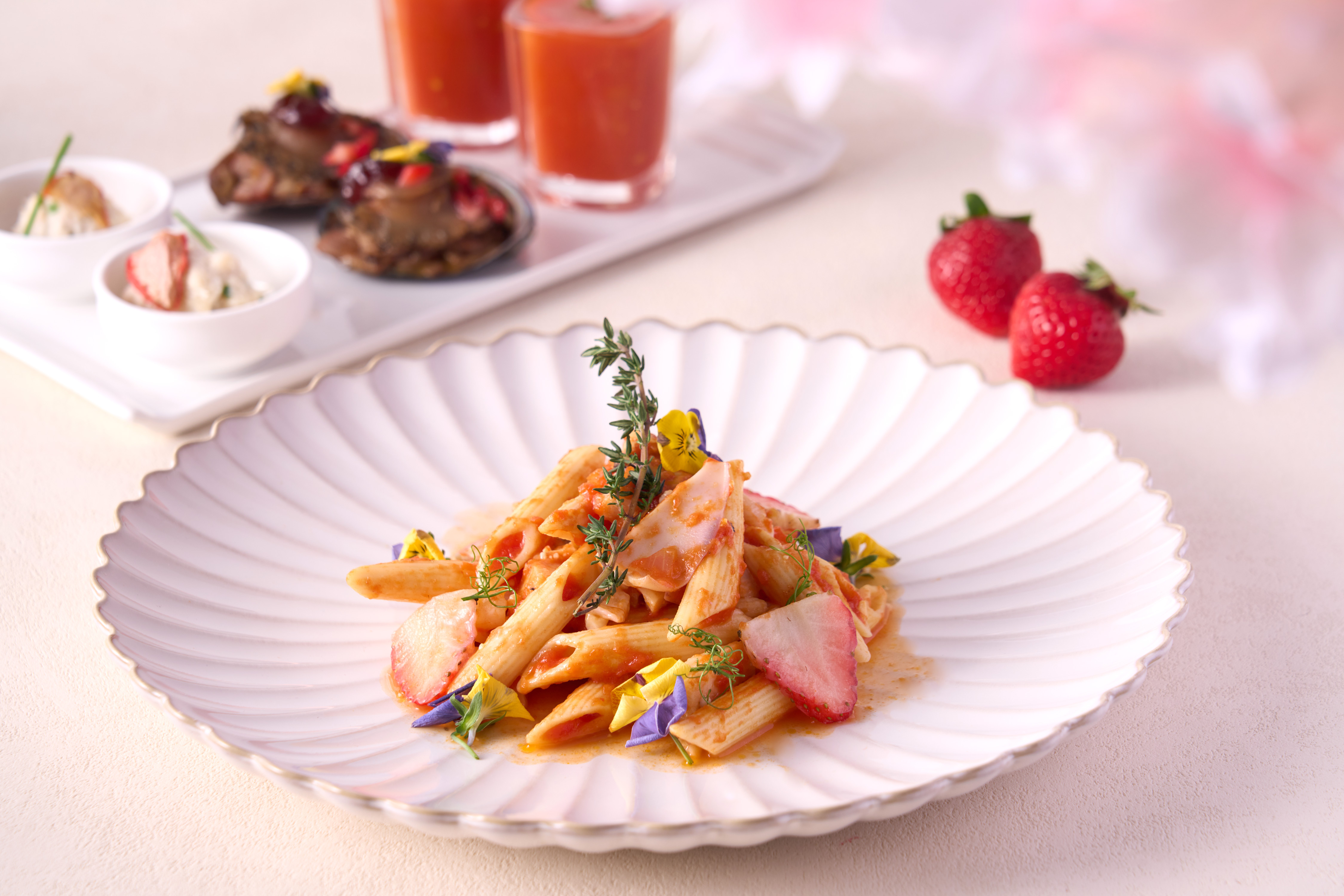 5가지 서양 딸기의 절묘한 풍미를 고디바 소프트 아이스크림과 함께 3코스 애프터눈 티로 경험해 보세요. 신선하고 달콤한 딸기의 꿈속으로 들어가 보세요.