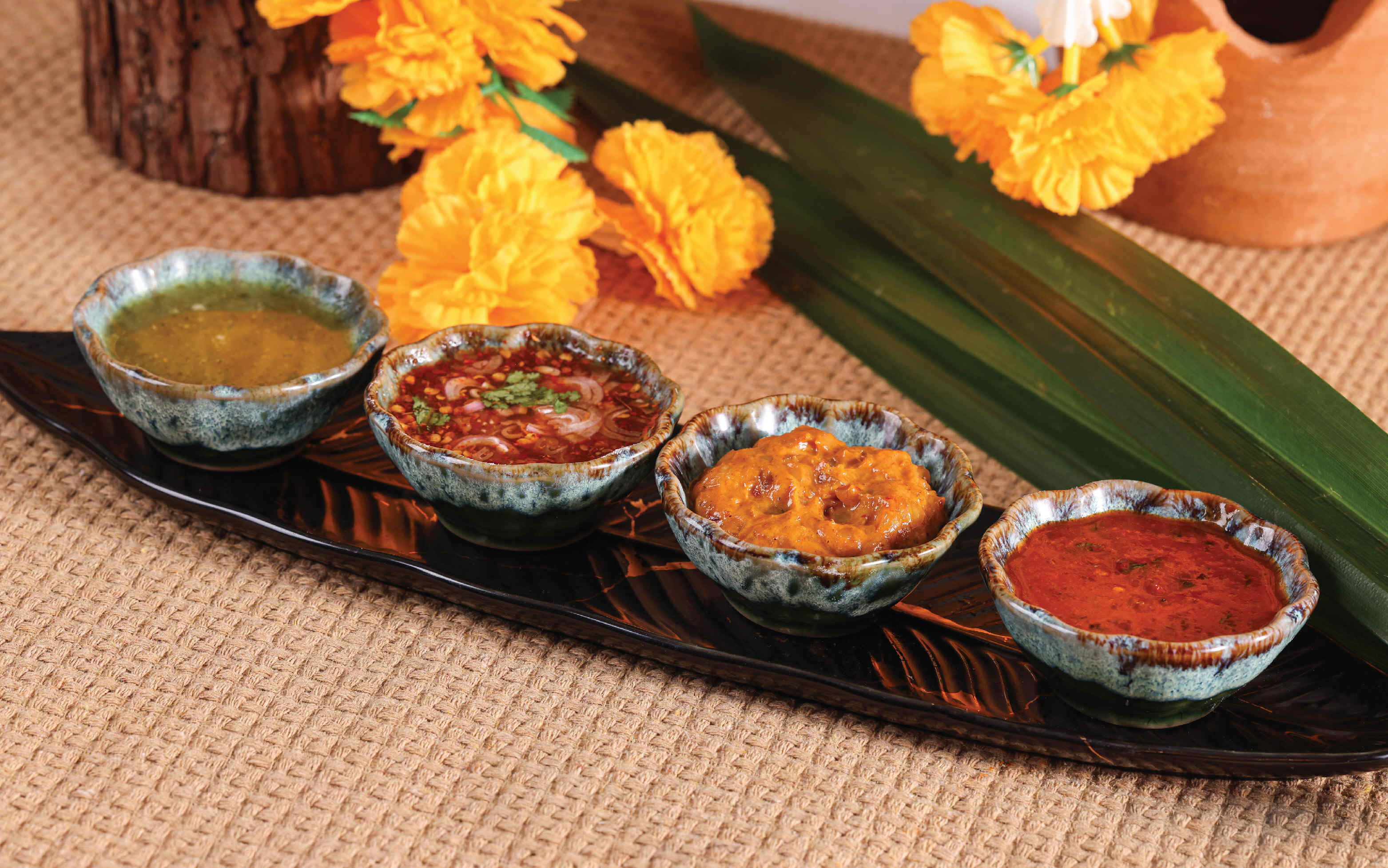 For savoury selections, the menu presents charcoal-grilled barbecue skewers featuring Abalone, Oyster, and Squid, accompanied by four house-made sauces crafted by Chef Jack: Satay Sauce, Thai Seafood Sauce, Tamarind Sauce, and Chili Sauce. These pairings reflect the distinctive essence of Thai cuisine.