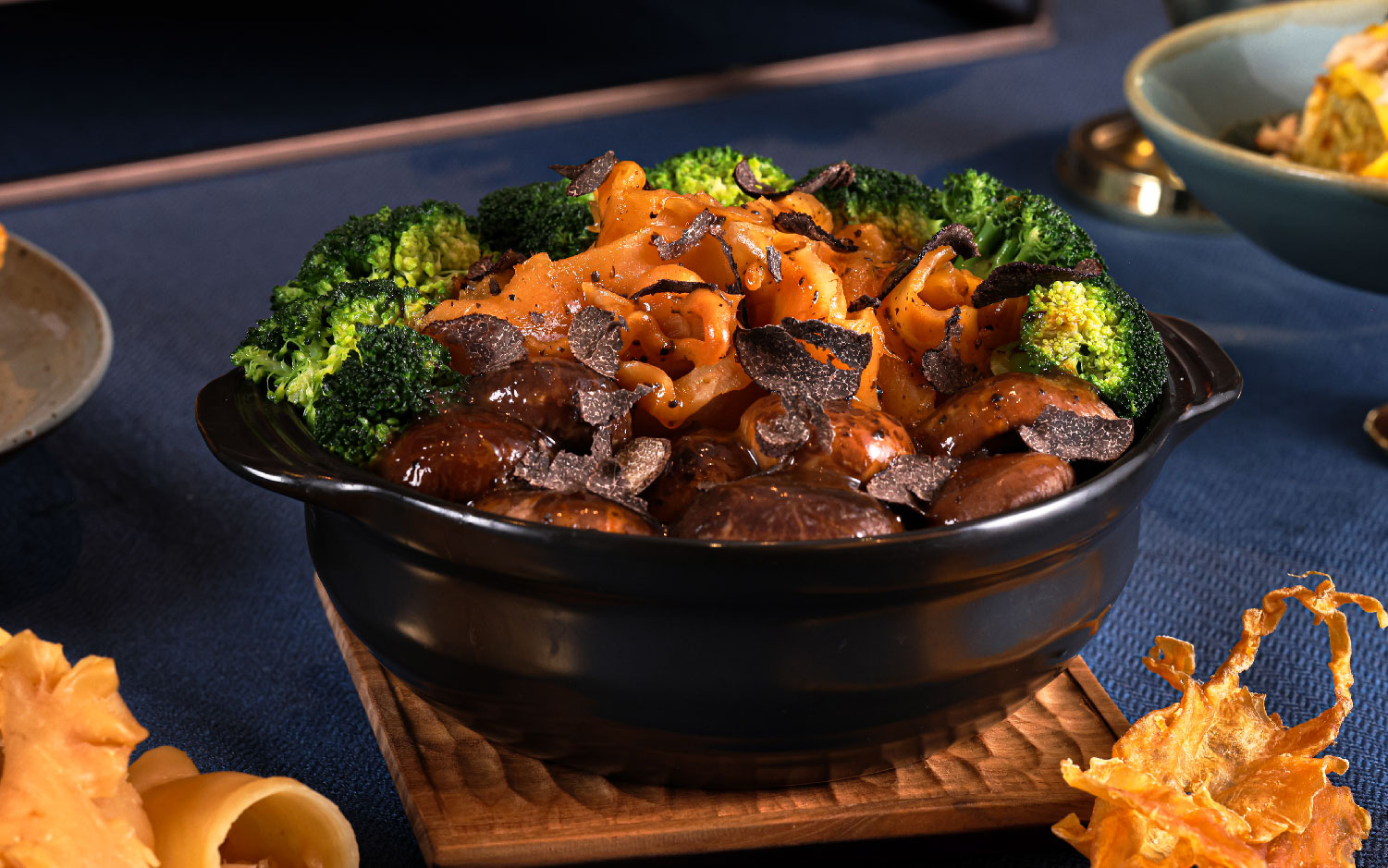 在The Market品尝广受欢迎的阿拉斯加皇帝蟹佳肴,自助晚餐更全新加入多款花胶和黑松露佳肴,包括即席烹调的黑松露鲍鱼炆花胶、日本温泉蛋配黑松露、花胶葡挞。
