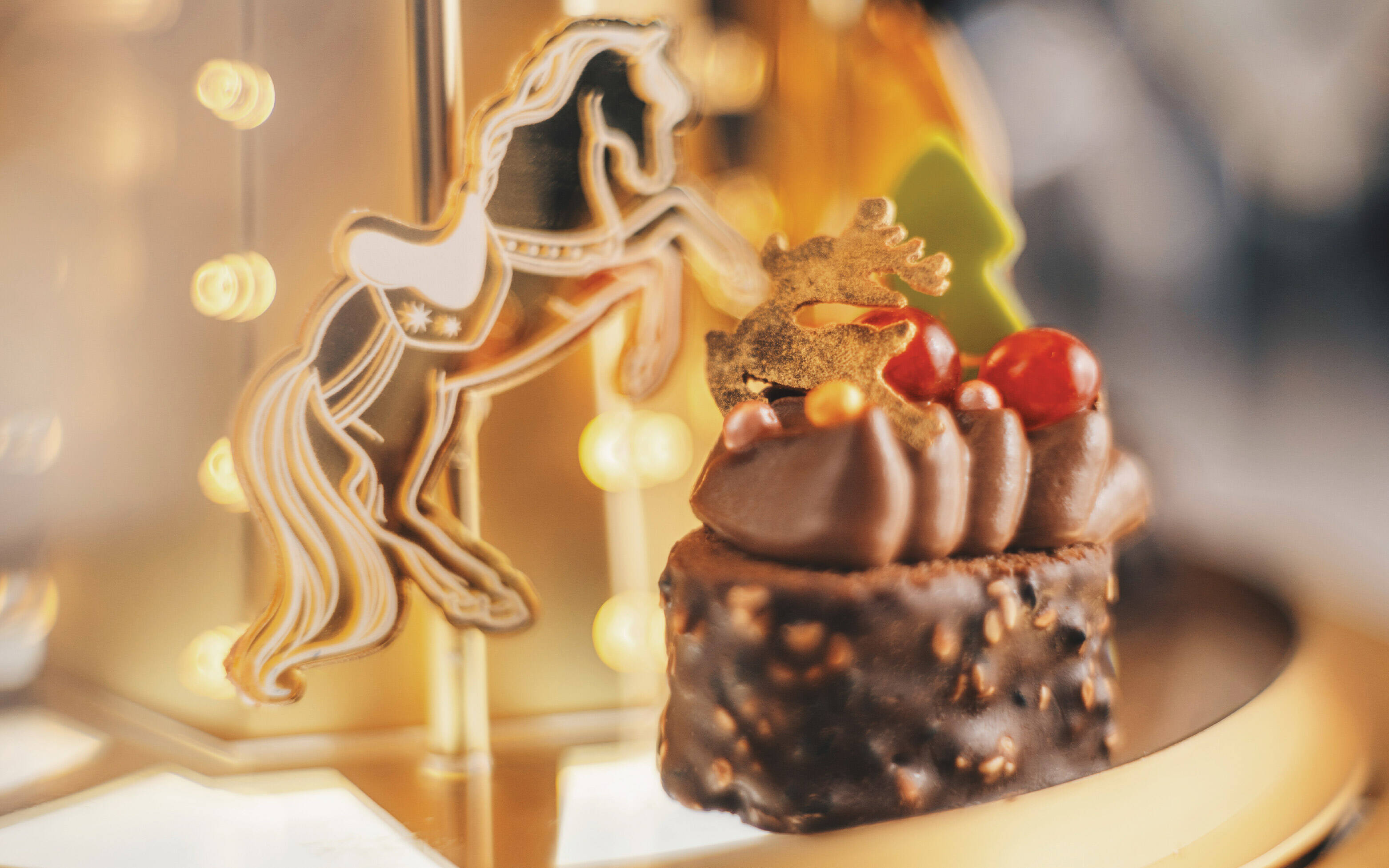 您可于晚上在9楼Timeless Lounge ,一边远眺壮丽的城市和维港夜景,一边享用「GREEN X GODIVA:星愿木马」甜点套餐。金光璀璨的旋转木马为您带来无限惊喜与甜蜜祝福!