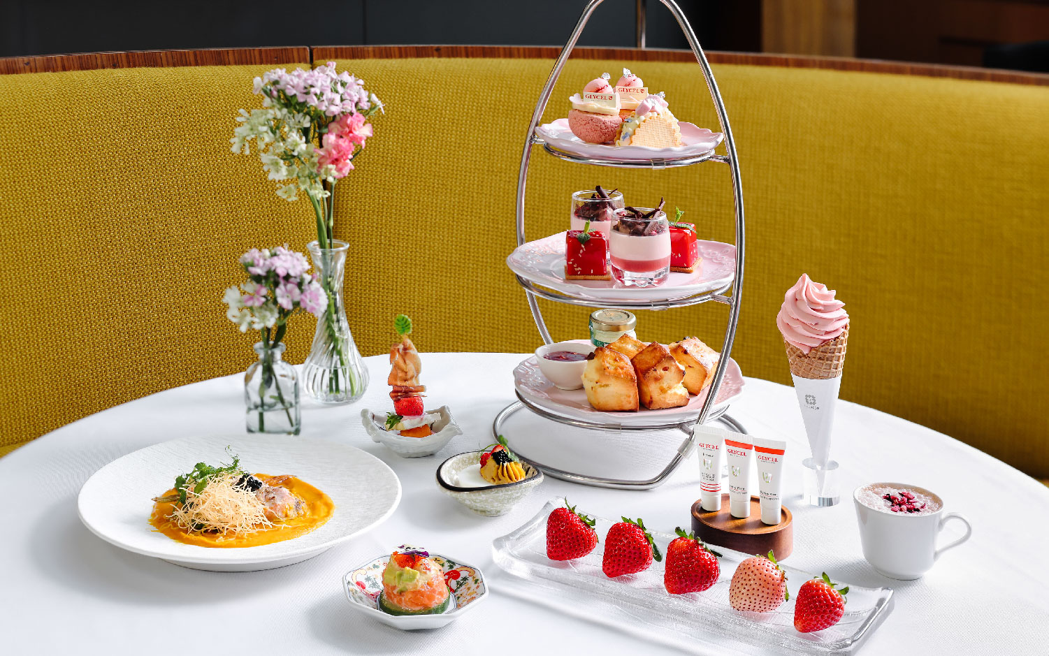 GREEN与GLYCEL携手呈献以日本不同县市珍稀士多啤梨为主题的下午茶,让午后时光更添甜蜜。每位食客更可获赠GLYCEL再生美肌体验套装及皇牌疗程乙套(总值高达:港币$2,522)^。