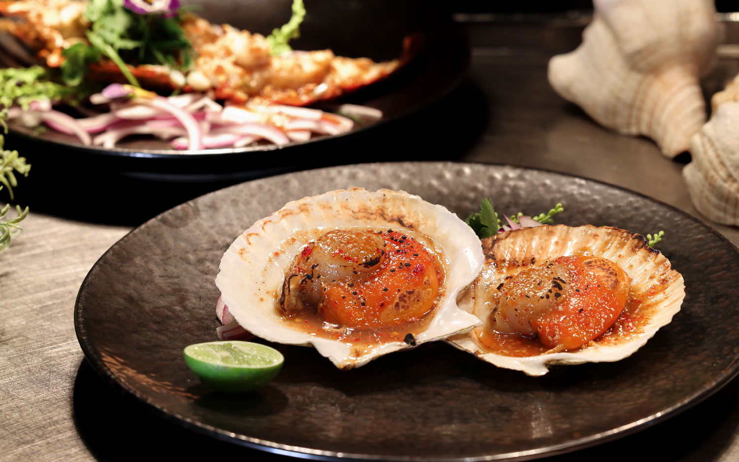 由芒果糯米飯到泰式紅寶石配芋頭雪糕,各款地道泰式甜品都是由泰籍主廚 Jack Pinkkang 師傅精心製作。Jack 亦為您準備一系列泰式串燒,包括生蠔、鮑魚及魷魚,配上自家特製醬汁,讓您體驗正宗泰國風味。為您帶來濃厚而原始的泰國街頭滋味。自 2 月 6 日起,更隆重加入全新菜式——香烤半隻加勒比海野生龍蝦及泰式燒帶子,為您的宵夜時光增添一份極致豐盛。